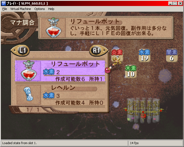 The fog might be a little bit too strong, but it's kinda hard to evaluate. It seems to work well otherwise. I implemented instruction VITOF0 in the VU coprocessor code. I didn't think about it last night, but the VU1 is also used in some other places too. It is used to render the test tubes that appear at various places and it should be used to render the "cards" when creating new items. The microcode used to render the test tubes seems to be completely different from the one used for rendering the world map, but it seem to work well without any changes to the emulation code. But there's some unimplemented instructions in there though, so I'll need to check what needs to be completed tomorrow. |