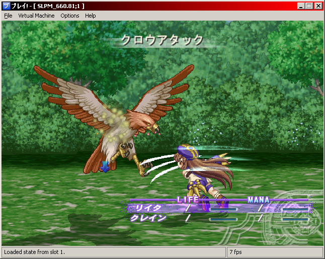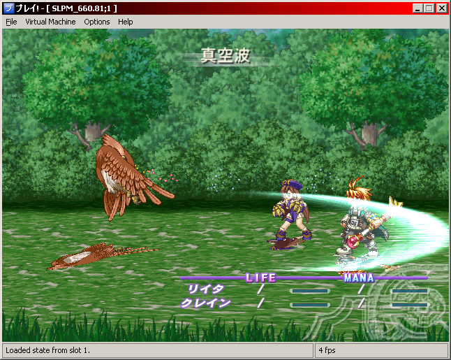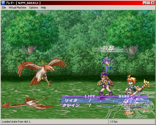 I added support for the triangle fan primitive in the OpenGL GS handler and implemented the VSUBbc instruction in the VU COP module. The character status and the players/enemies are now visible at the same time, but the backdrops are still invisible. The game sends some display lists that have triangles sharing all the same point on the screen and I think that's why the backdrops aren't visible. I'll be investigating on this tomorrow. |