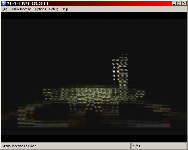 Now everything is fine for intra macroblocks, but some frames remain screwy when they're using predicted macroblocks. For example, the frame with the DigiCube logo which comes from an I-picture looks as it's supposed to look, while previous ones have some visible artifacts due to bad predictions. Some artifacts are visible too in the second picture above. I think the problem lies in the dequantisation of these blocks. I haven't really tested them in my experimental MPEG-2 decoder, so I'll be checking if everything is alright on this side tomorrow. If it's not caused by problems from the MPEG-2 decoding functions in the IPU, then it's probably related to the newly implemented MMI instructions. Also made some minor changes: - Isolated the computation of the lookup table for the Cr and Cb indices, used in the CSC command, in a function and made it so it's called only one time and not each time a CSC command is executed. - Added some Y position compensation in the GS handler when using an interlaced mode (fixes jumpy screen). But I'm not sure this is the appropriate way to do this though... |