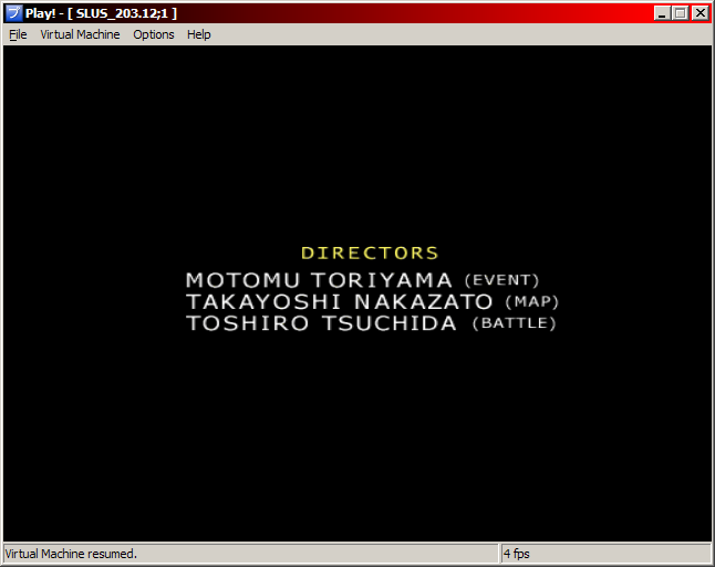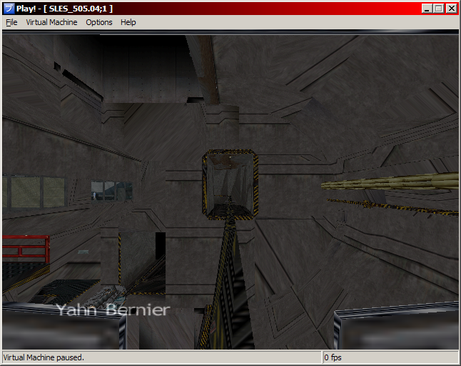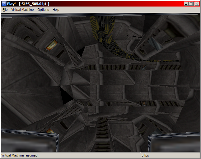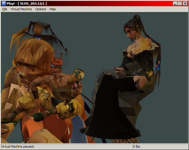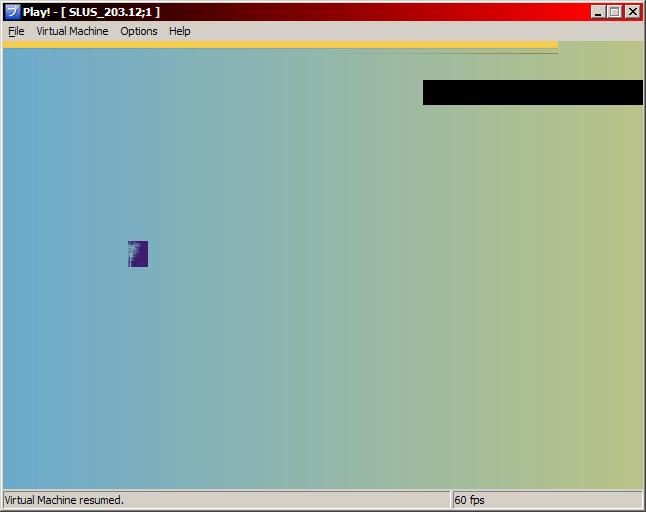 In the first screen shot, we can see the main menu. For some odd reason, the game detects an hard drive within the virtual machine, so there the option to install the game... Also, the cursor is invisible, so it's a bit hard to see which item we're selecting. I don't really know why we don't see it. In the second screen shot, we can see what looks like the game data load menu. There's no text in the menu. I think it might be related to a weird TEX0 GS register write I'm getting. The game generates a TEX0 register value which has a PSM value of 9, which isn't valid. It's not a CPU bug because the TEX0 value is a constant in the executable. It could be because of the way I handle register writes within the REGLIST GIF command. |