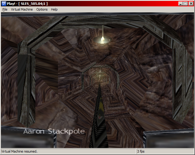 The textures are very messed up and they seem to move with the level, which might mean that it's a problem with perspective correction or something. Unfortunately, the little train in the game stops working at the position of the last screen shot. I'm guessing that there a little floating point inaccuracy bug... It's one of those problems that are quite hard to debug. I'll try to see if there's something I can do about it. |